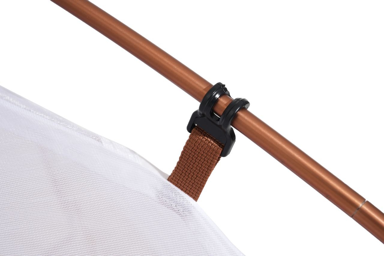 طراحی نیمه هلالی( عملکرد عالی در برابر باد) و دولایه قابل تفکیک( استفاده در فصول مختلف ) پوش رویی : mm 20D نیلون پلی استر با مقاومت در برابر آب 2000mm و پوش داخلی: پارچه توری و کف چادر : 75Dmm نیلون با مقاومت در برابر آبmm 5000 است.