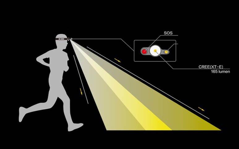 این هدلایت در حداکثر شدت تابش خود قادر است ۱۶۰ لومن نور تولید کند و تا ۶ ساعت میتواند با این شدت نور روشن بماند.